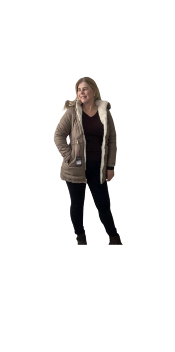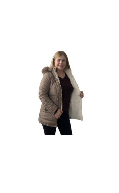 Casaco Parka de Dupla face apeluciada com bolsos dos dois lados e capuz