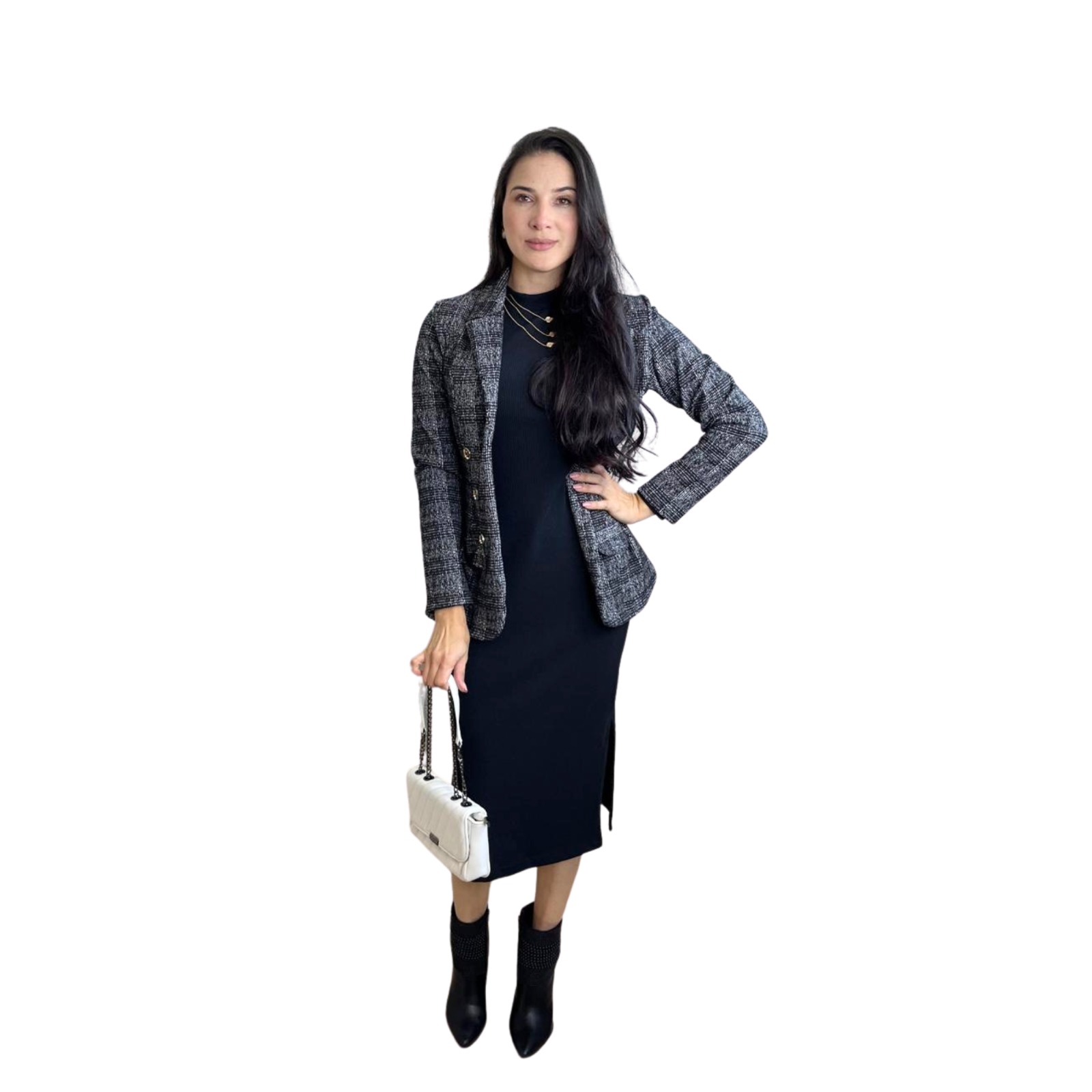 BLAZER – PRETO E BRANCO – POLIESTER E ELASTANO