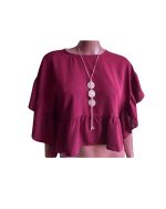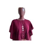 Para quem procura uma peça leve e sofisticada, essa blusa com babados em viscolinho é a escolha ideal. Confortável e elegante, ela combina com diferentes estilos e ocasiões. A cor vinho agrega um toque de sofisticação e modernidade ao look.