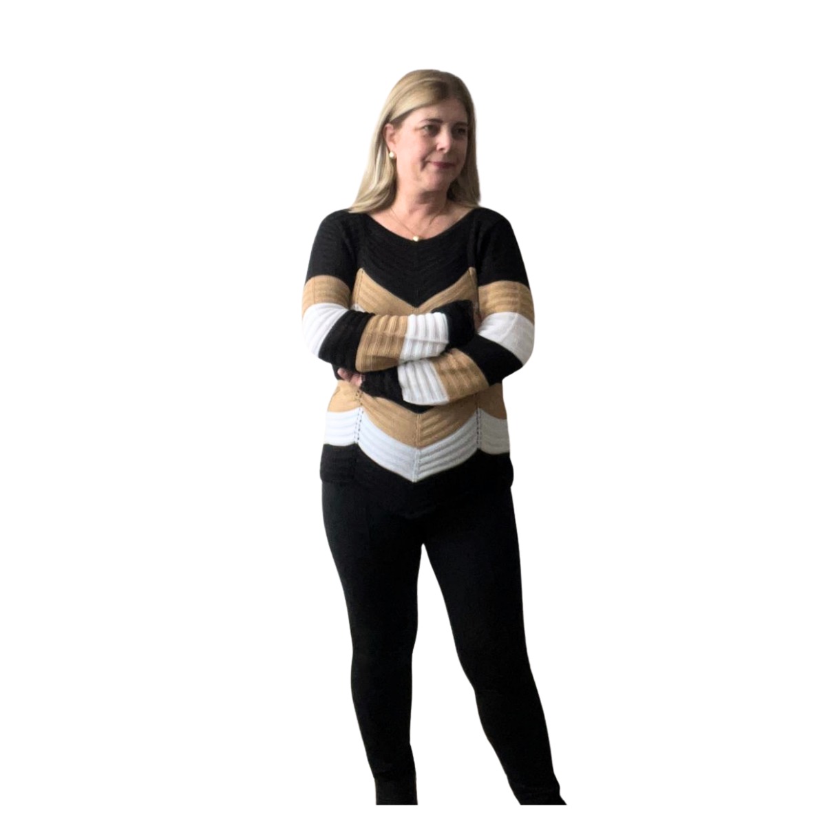 Blusa Tricolor de Fio – Preta, Bege e Branca