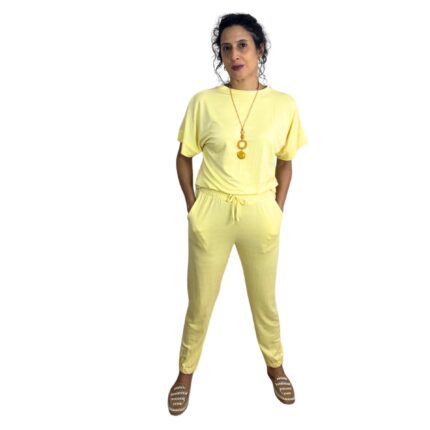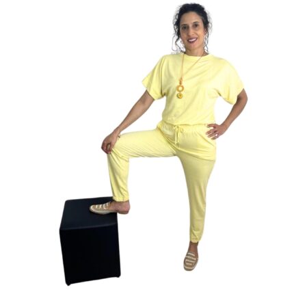 Conjunto Calça e Blusa Manga curta- Amarelo (Viscose e Elastano)