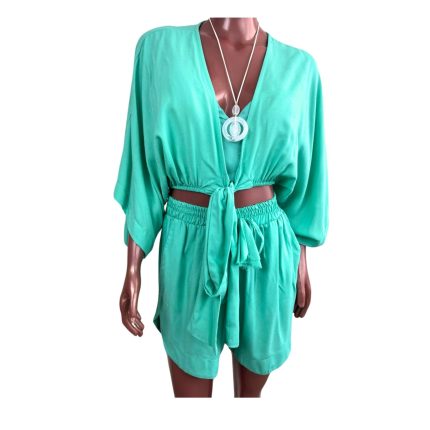 Conjunto de Short e Camisa Manga Longa em Viscolinho