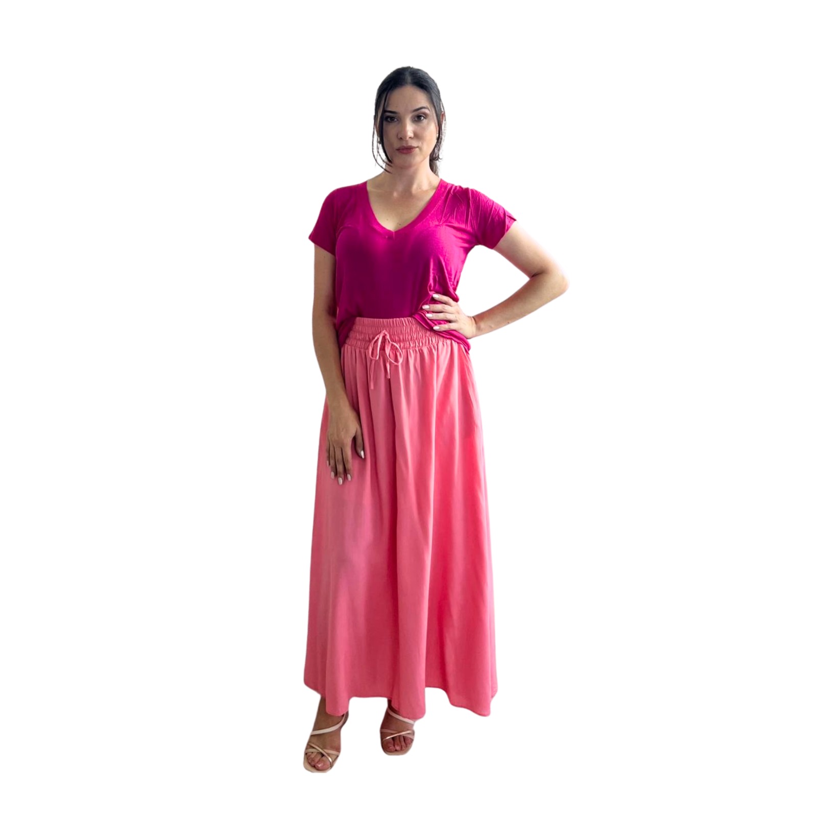 Conjunto Saia Midi e Blusa Sem Manga
