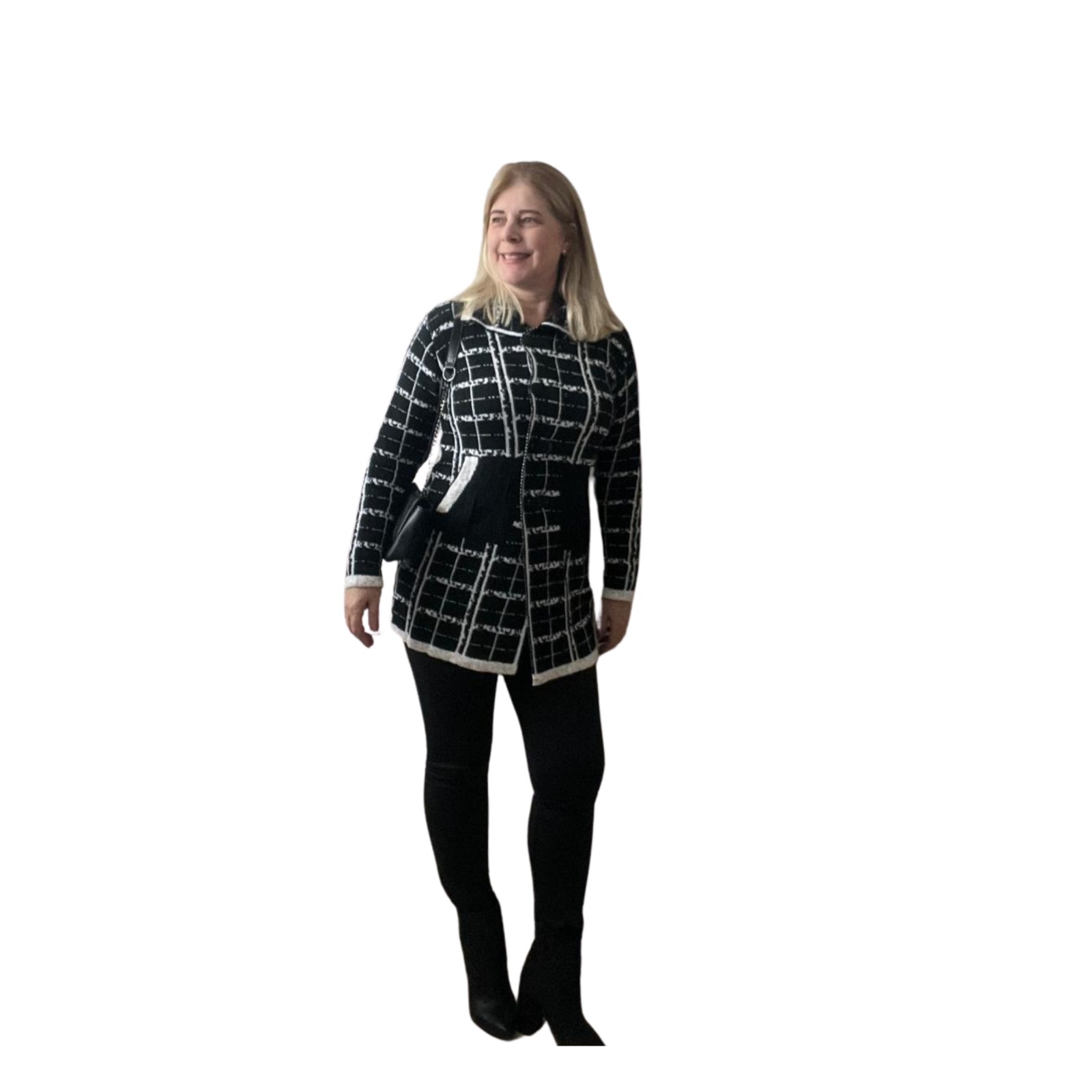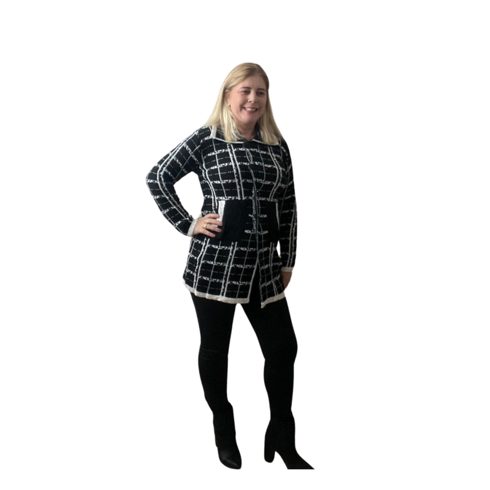 O casaco perfeito para quem ama um look moderno sem abrir mão do conforto! Com design quadriculado marcante, nosso Casaco Tricot Quadriculado une estilo e versatilidade em uma peça indispensável para os dias mais frescos.