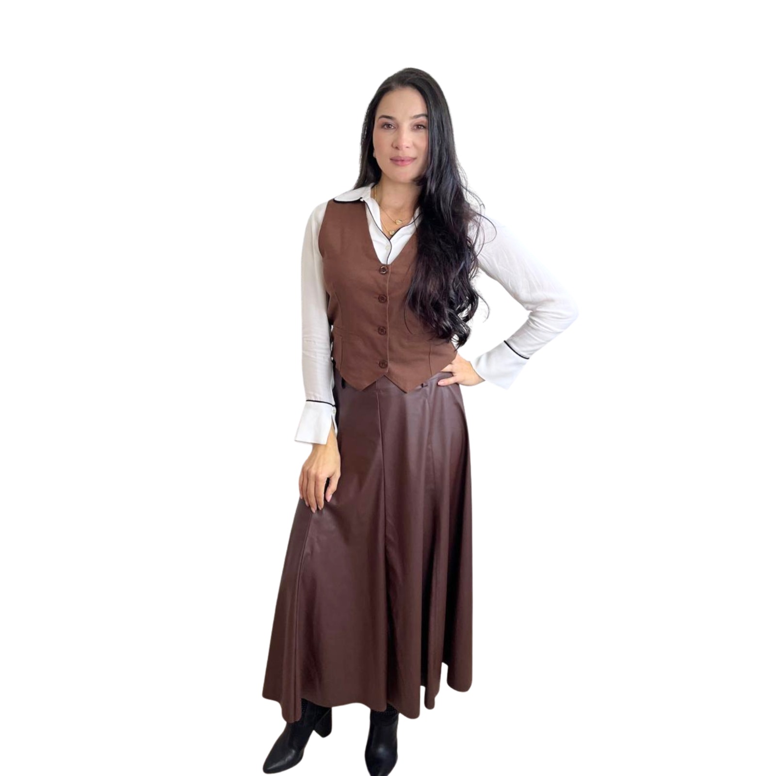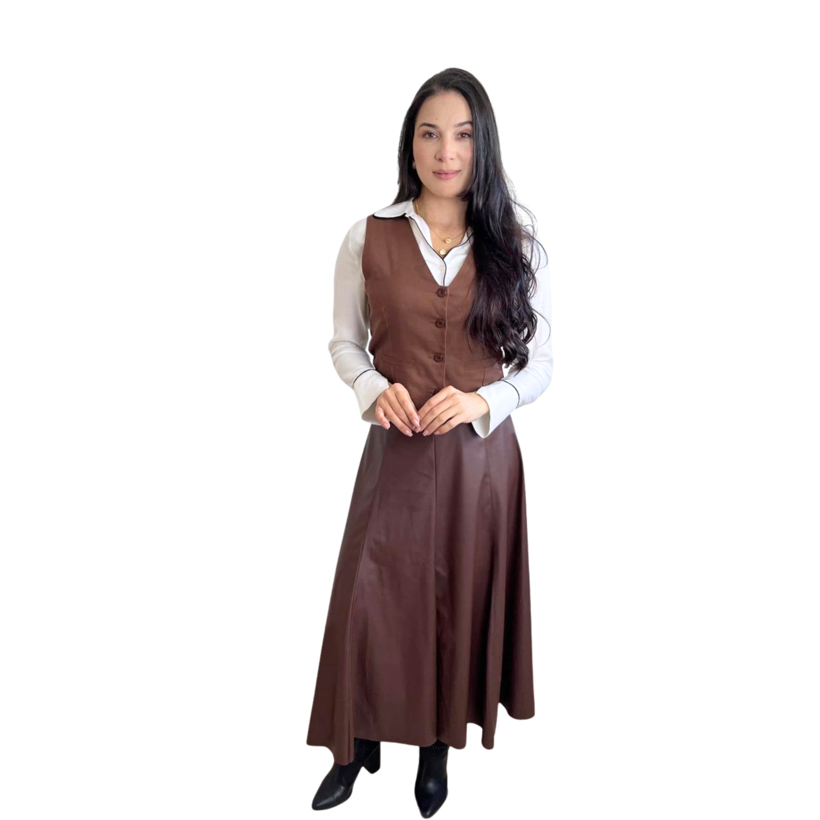 Peça-chave para compor looks estilosos e modernos, o Colete com Botões é perfeito para sobrepor camisas, blusas ou vestidos, trazendo charme e sofisticação ao visual. Com design clássico e fechamento frontal por botões, ele tem modelagem levemente ajustada e acabamento impecável.