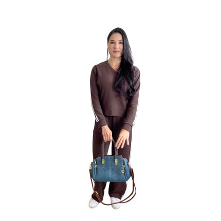 Disponível nas cores marrom e bege, combina com tons neutros ou contrastantes, adaptando-se facilmente a diversas ocasiões – do trabalho ao passeio.