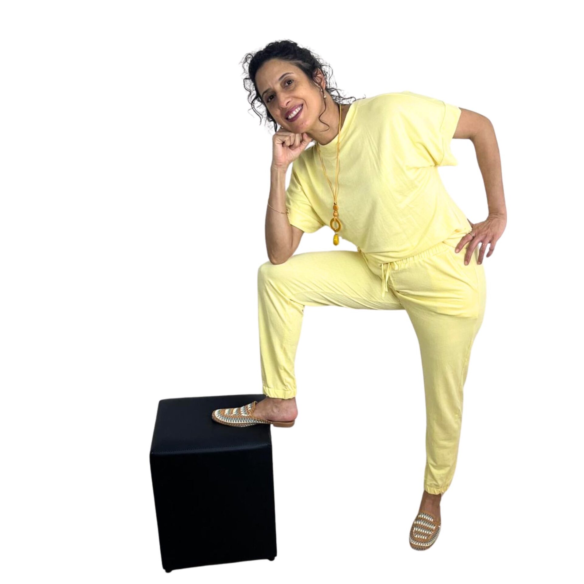 Conjunto Calça e Blusa Manga curta- Amarelo (Viscose e Elastano)