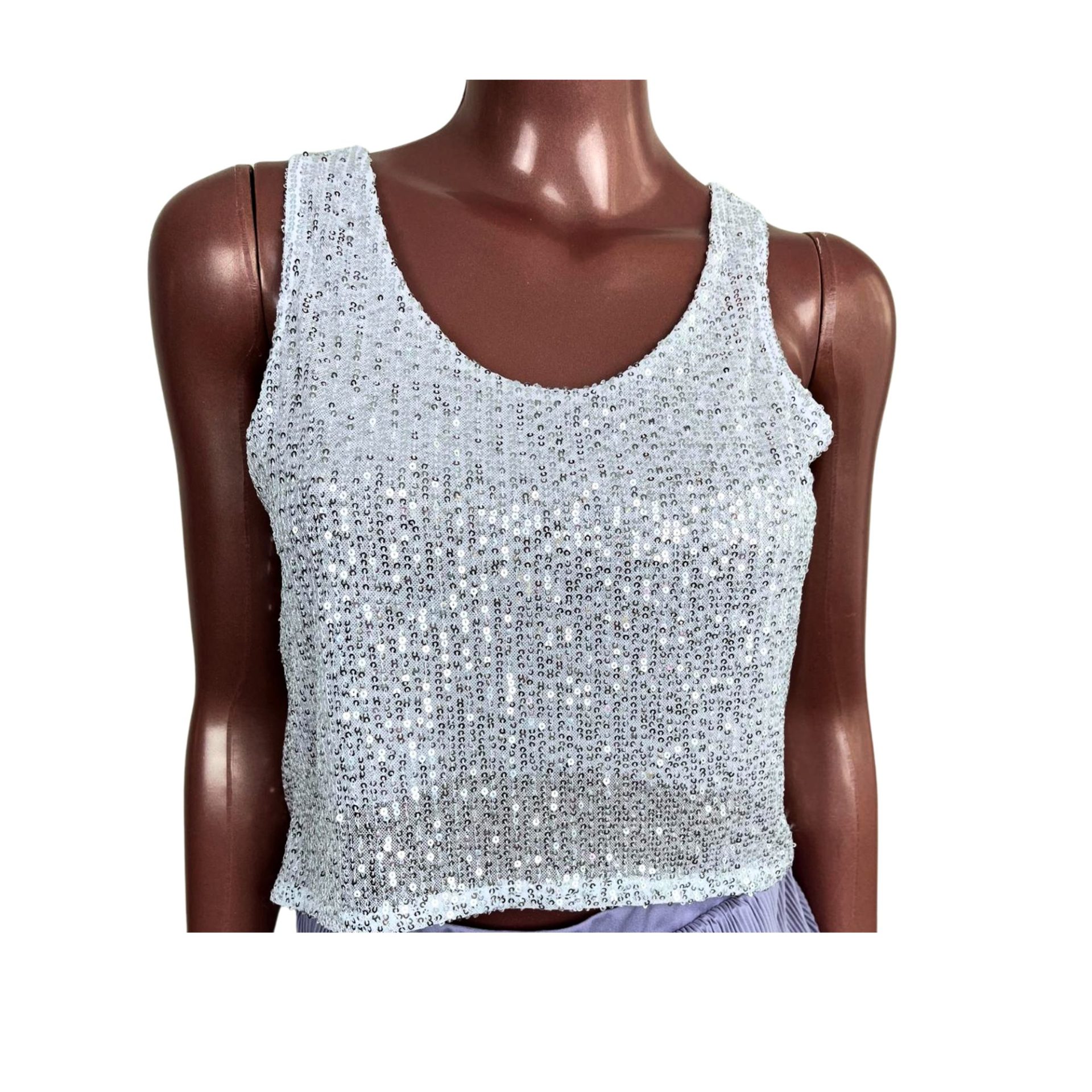 Em até 5x de R$13.98 sem juros À vistaR$62.91no Pix Regata de Lantejoula Branca (Poliéster e Elastano)