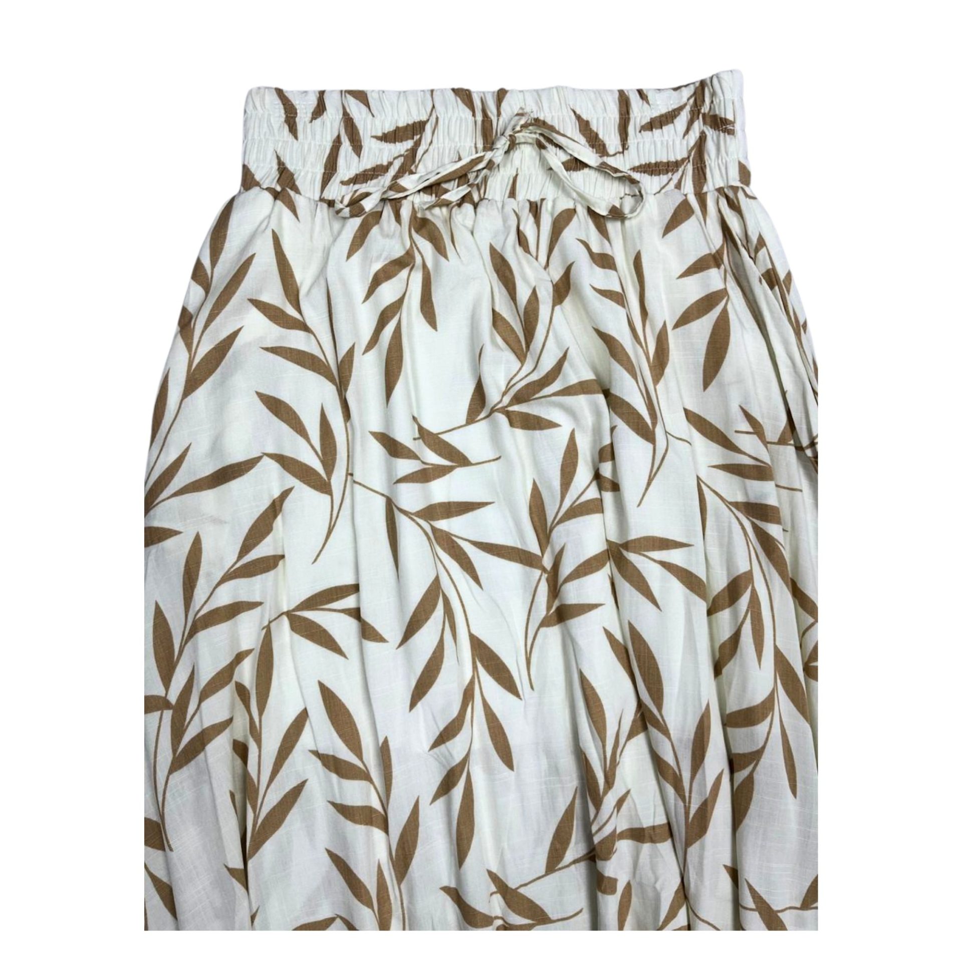 - Cor: Branca com estampas de folhas em bege, trazendo um toque natural e elegante.