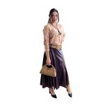 Nossa saia longa é confeccionada em tecido de poliamida com elastano, garantindo toque macio, caimento fluido e elasticidade na medida certa. Ideal para diversas ocasiões – do casual ao sofisticado!