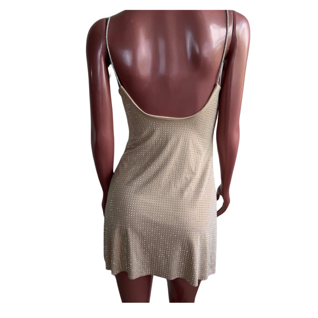 Destaque-se com este vestido deslumbrante que combina elegância e ousadia. Feito com poliamida e elastano, o tecido se ajusta perfeitamente ao corpo, proporcionando conforto e um caimento impecável.
